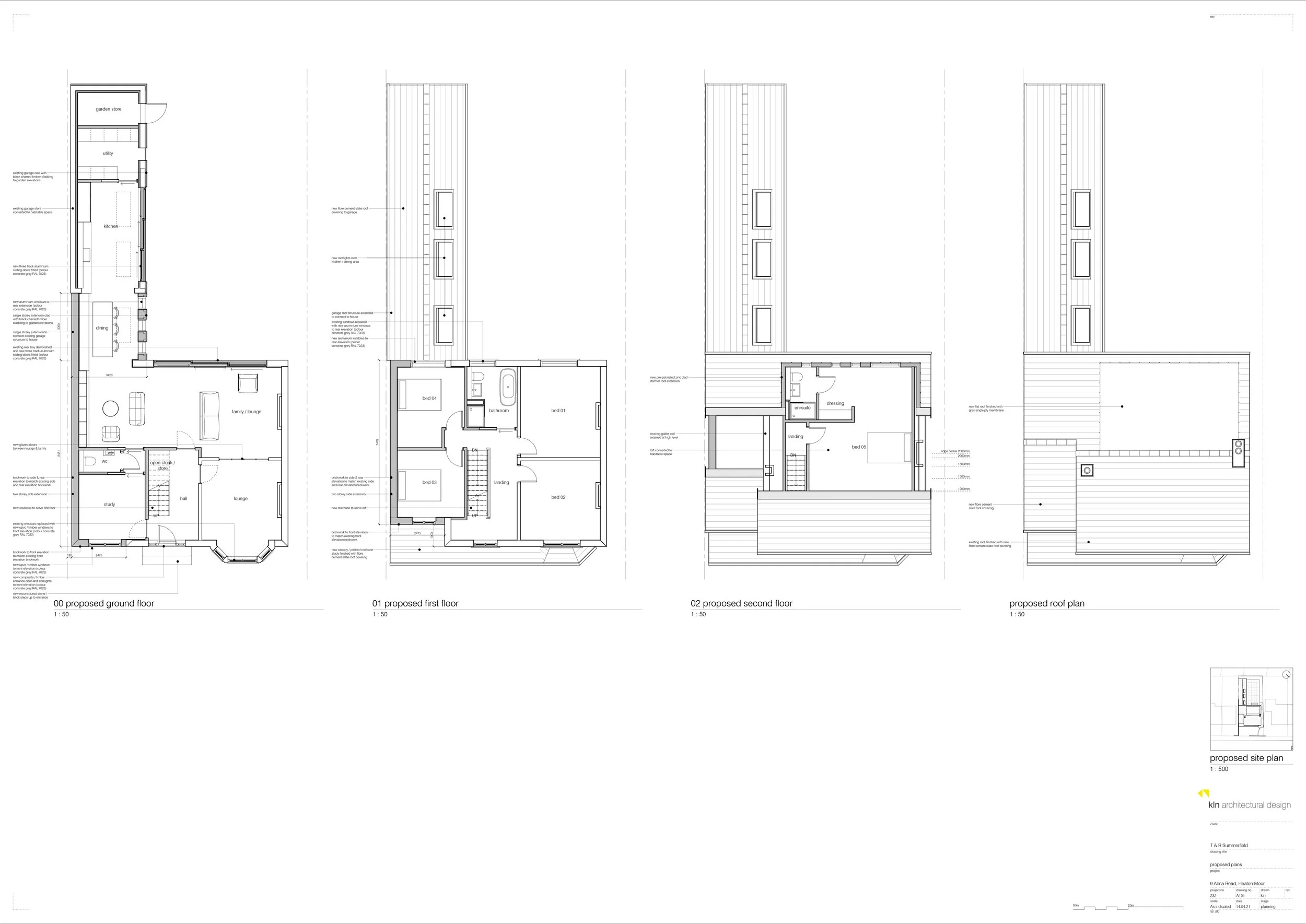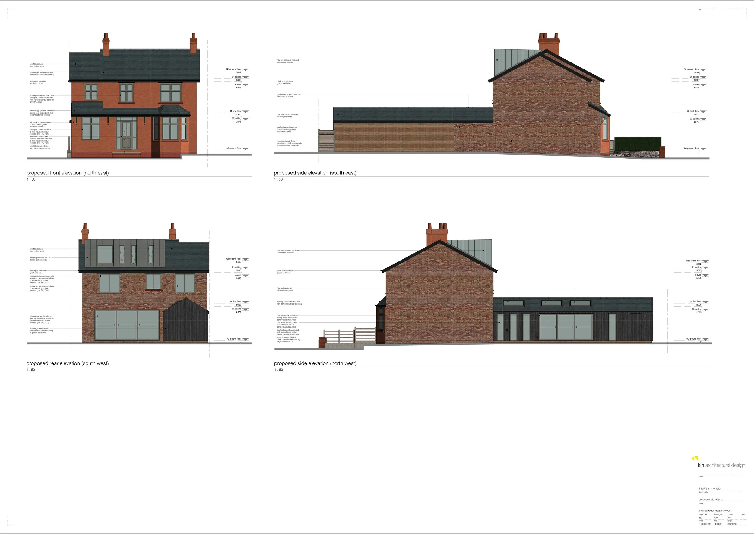 The client brief sought to rationalise the existing ground-floor layout by connecting the garage to the main house and converting it into habitable accommodation to contain a new kitchen and utility. This intervention significantly increases the usable ground-floor area. The brief also required an open-plan lounge, dining and kitchen space, a home office, and the addition of two further bedrooms to create a five-bedroom dwelling, including a master bedroom with ensuite. Externally, the client wished to enhance the appearance of the front elevation so the house sits harmoniously with neighbouring properties and the adjacent conservation area. To the rear, a contemporary architectural solution was sought to unify new and existing built elements while maximising natural light to the internal spaces.