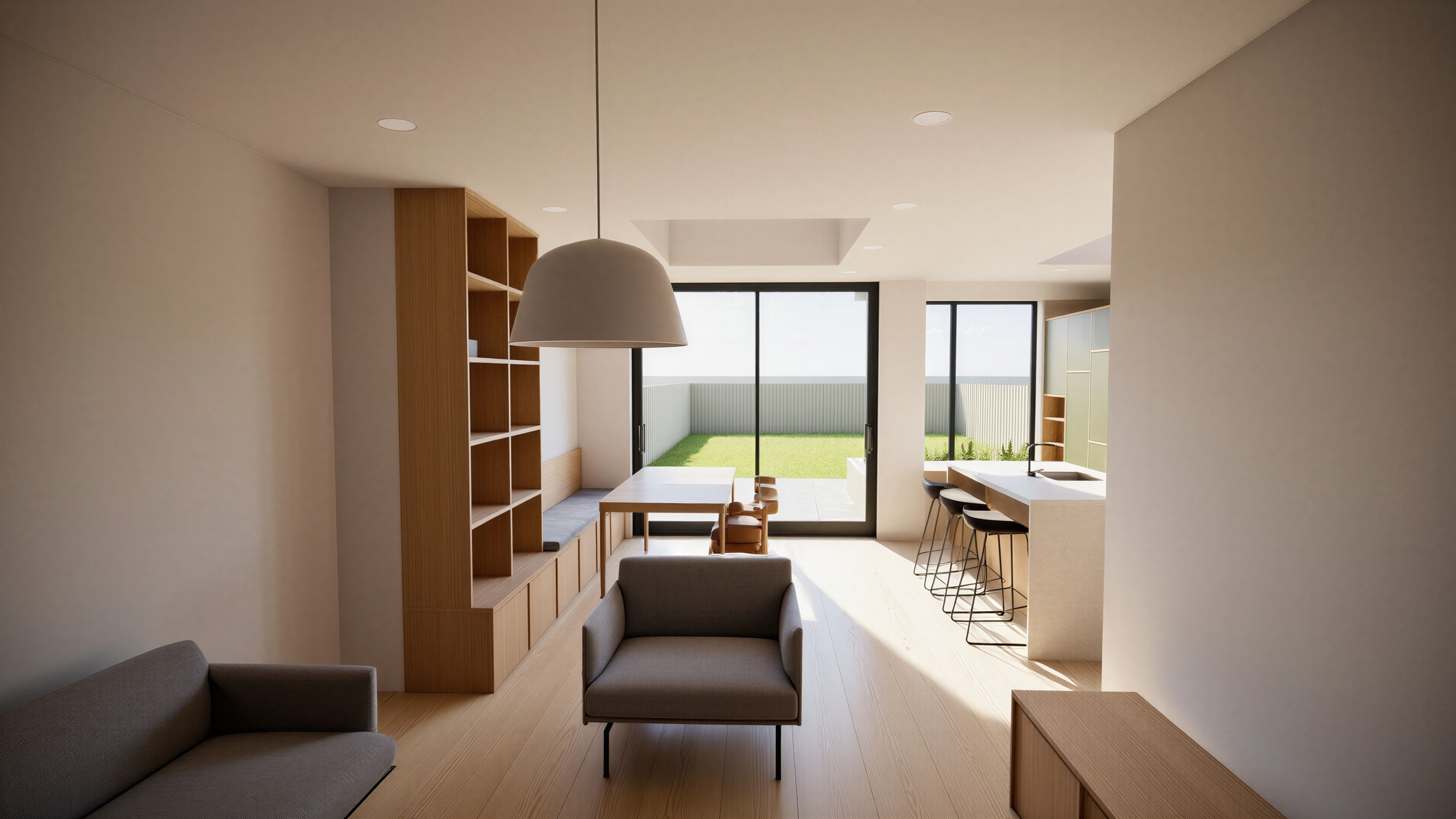 The existing house layout resulted in disjointed ground-floor spaces, with the galley kitchen isolated from the rear living area and the conservatory underused due to the common issues of overheating in summer and poor thermal performance in winter.